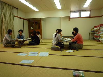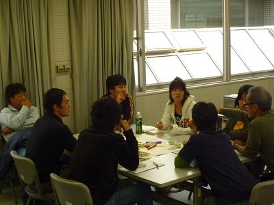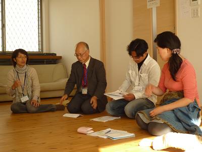 その後、人一組のグループに分かれ、ワールドカフェという手法で、