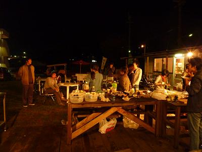各々にストレッチをしたり、しゃべったりしながら徐々に頭を起こして、朝市へ。
